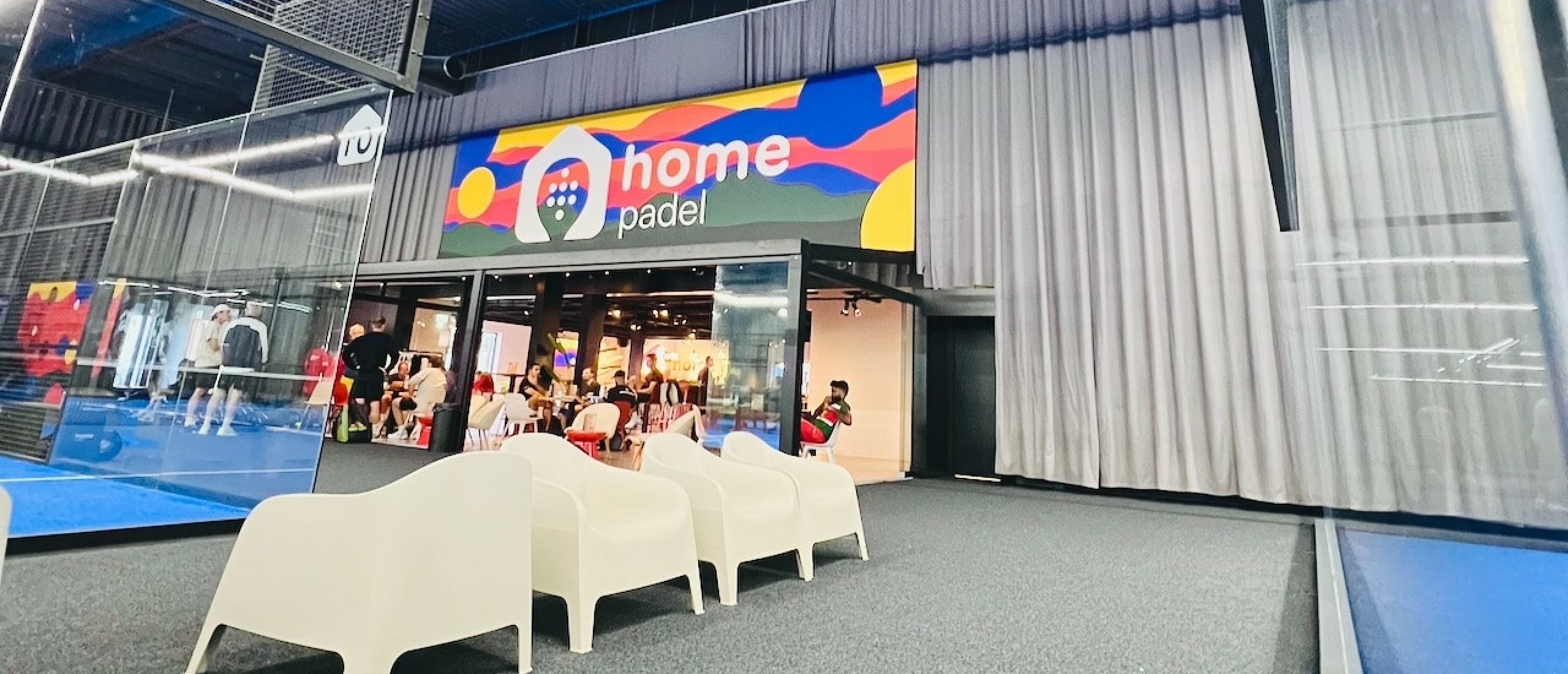 The location features high-quality indoor padel courts, a stylish hospitality area, and a rooftop with dedicated billiard zones.